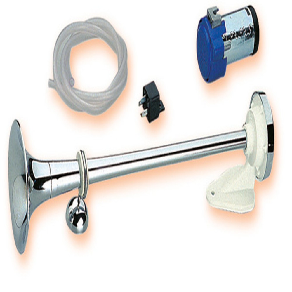 Τρομπέτα ΧΡΩΜΙΜΕΝΟΥ ΟΡΕΙΧΑΛΙΚΟ με διπλό στήριγμα στερέωσης. Αποτελείται από τρομπέτα, συμπιεστή, ρελέ και κιτ συναρμολόγησης.
