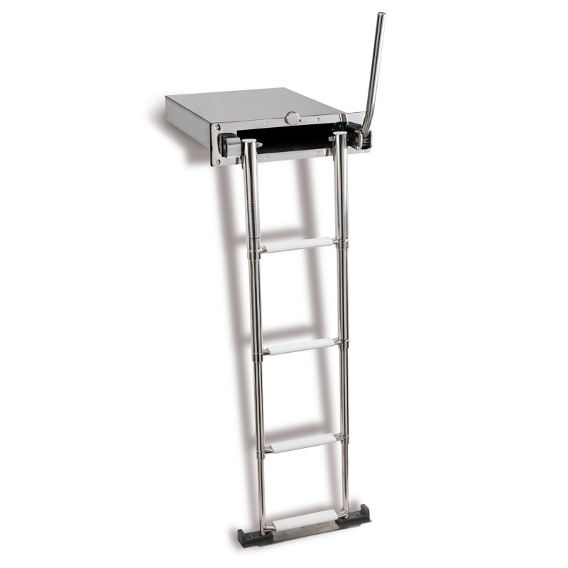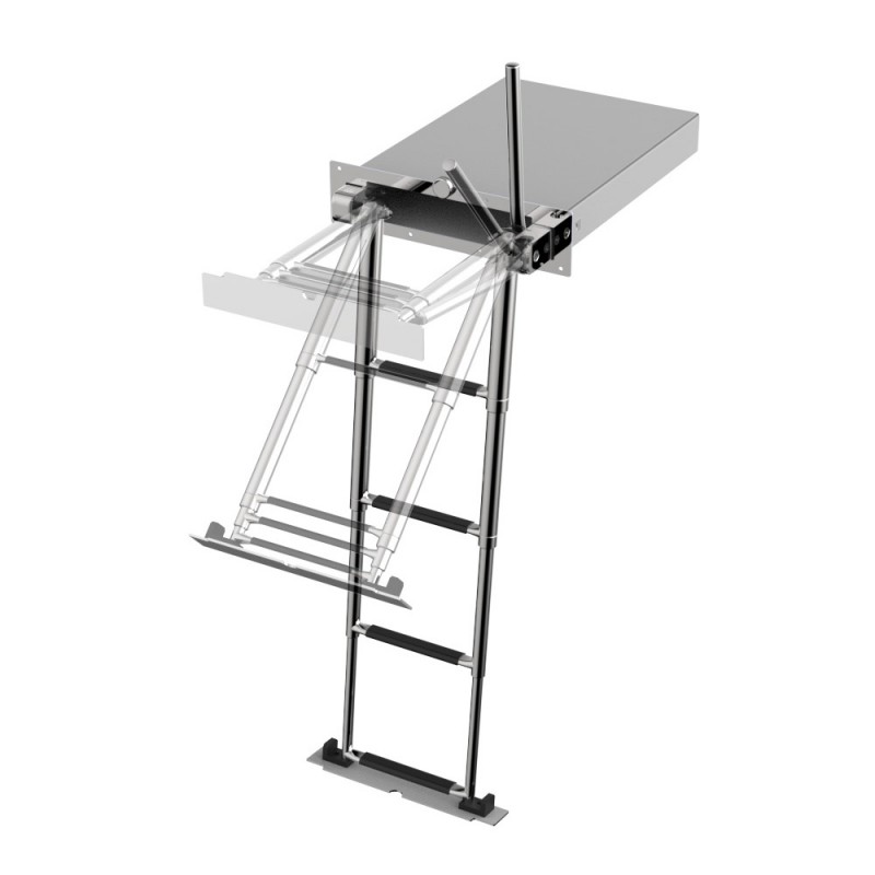Τηλεσκοπική αναδιπλούμενη σκάλα από INOX 316 με αυτόματο σύστημα λαβής.