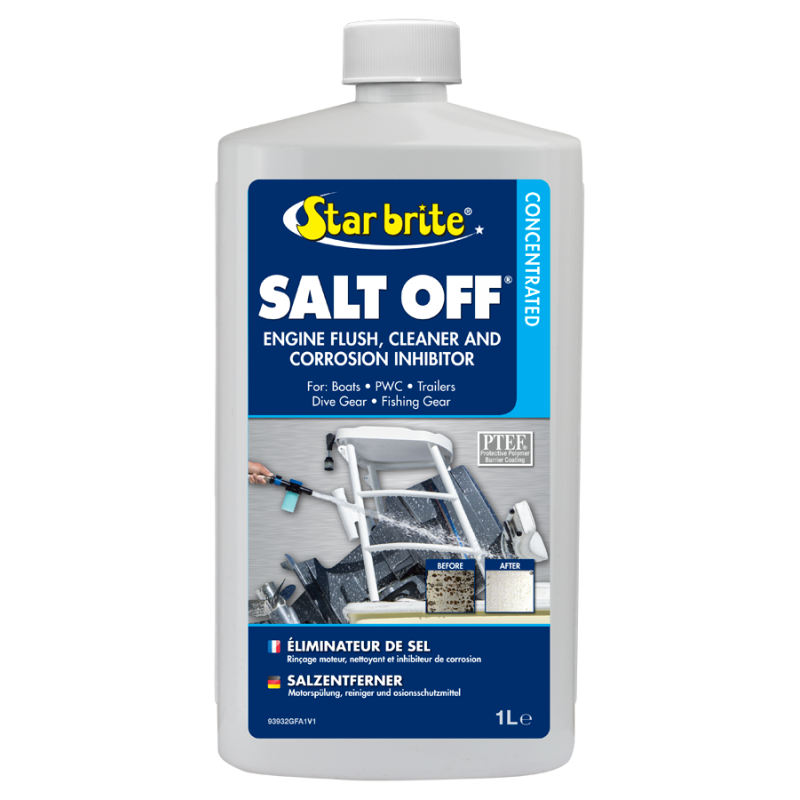 Συμπυκνωμένο προστατευτικό αλατιού. Αφαιρεί τις εναποθέσεις αλατιού από οποιαδήποτε θαλάσσια επιφάνεια. Χρησιμοποιήστε το για το ξέπλυμα εξωλέμβιων και εσωλέμβιων κινητήρων. Προστατεύει από ζημιές από την υπεριώδη ακτινοβολία.