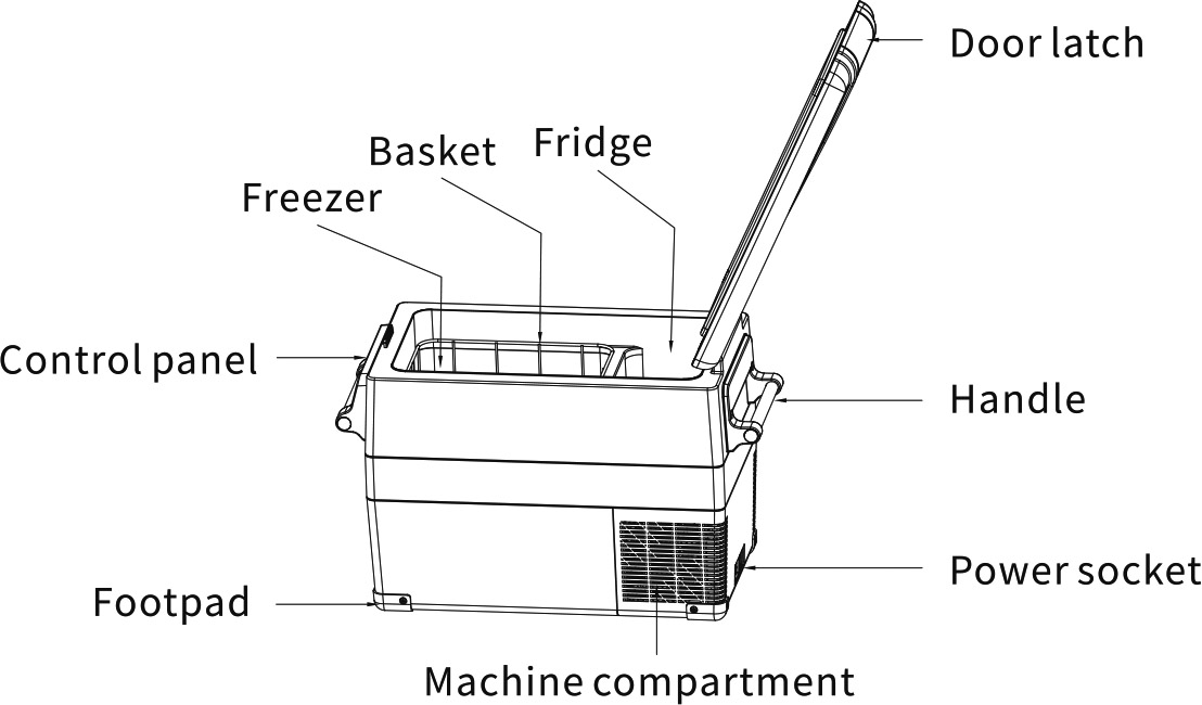 12v / 24v και AC τροφοδοσία Ψυγείο και καταψύκτης και κρατάει τη θερμοκρασία του 1-2 ώρες αφού αποσυνδεθεί