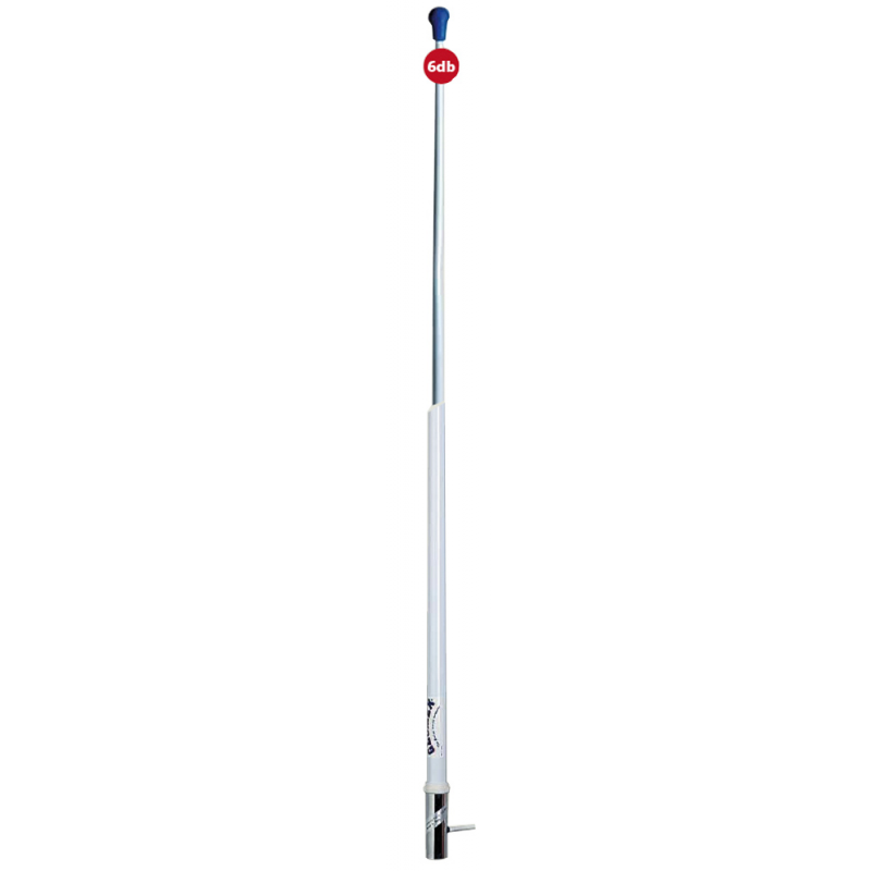 Κεραία VHF από fiberglass, cm 240. Συχνότητα 156-162 Mhz, κέρδος 6 db, σύνθετη αντίσταση 50 ohms, SWR = 1,3 έως 156,8 MHz, μέγιστη ισχύς εισόδου 100 W. Ομοαξονικό καλώδιο (μην το κόψετε) 4,5 m, με σύνδεσμο PL259. Για γιοτ και μηχανοκίνητο σκάφος.